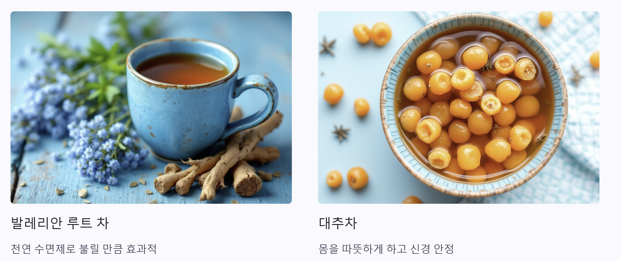 발레리안 루트는 천연 수면제로 불릴 만큼 효과가 좋아요. 수면 장애가 있는 분들에게 특히 추천하는 차예요.